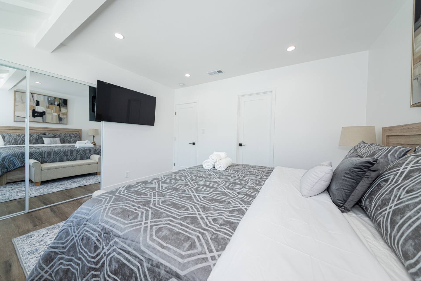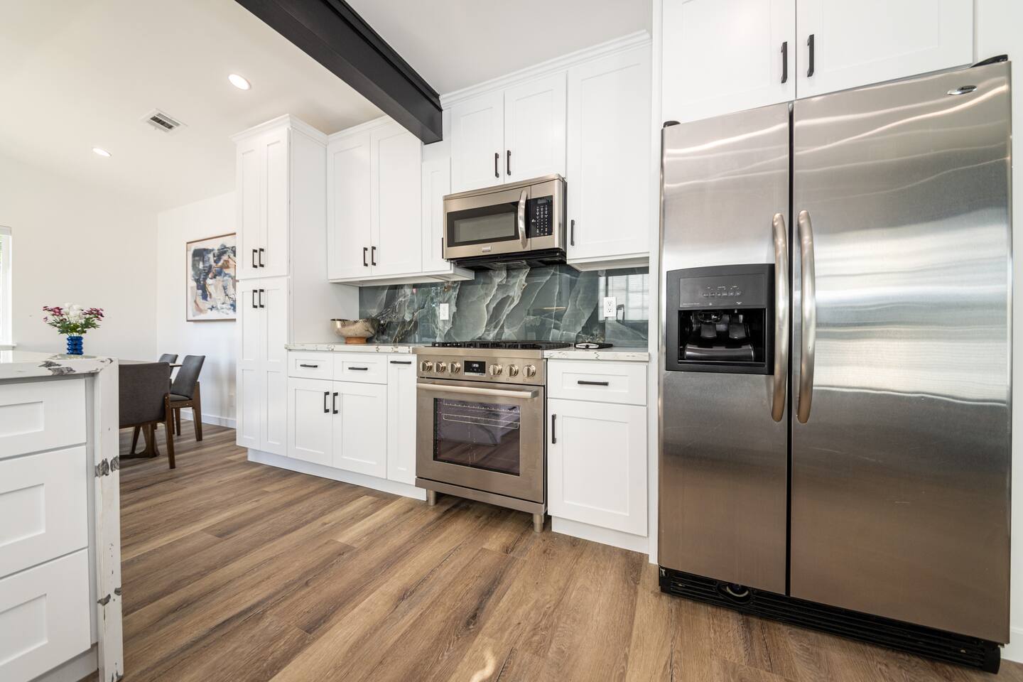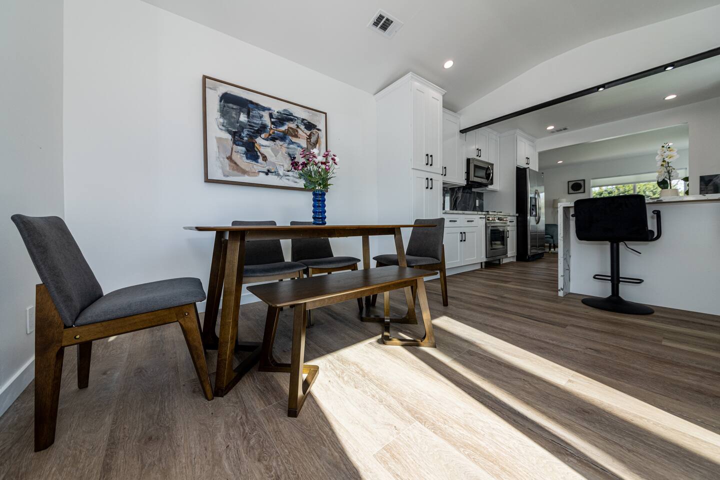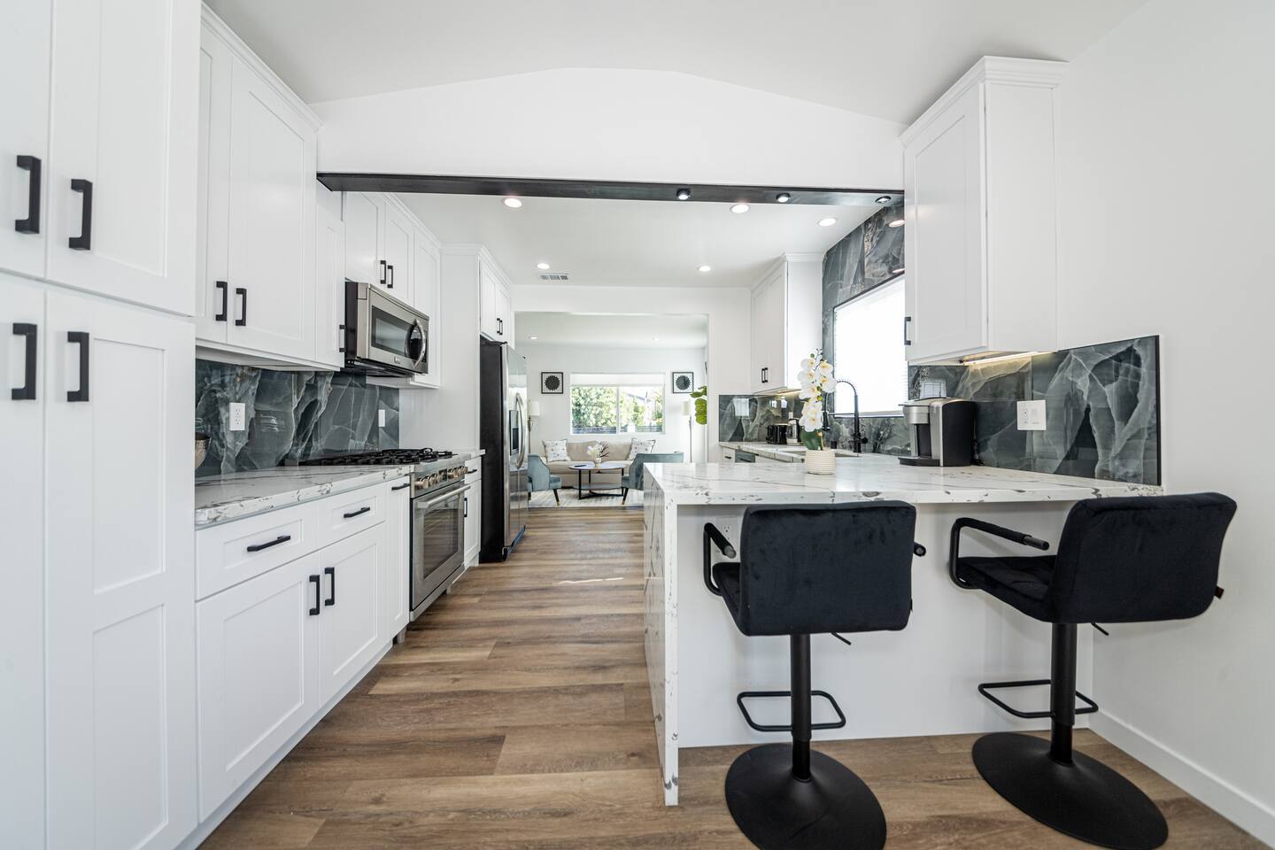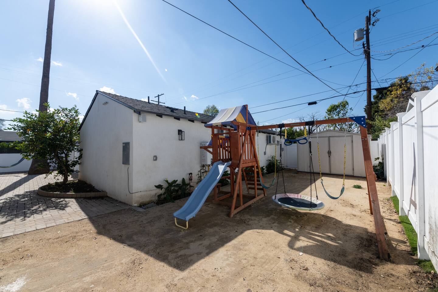 Welcome to your ideal Los Angeles retreat! This beautifully remodeled 3-bedroom, 2-bathroom home is designed for comfort, security, and convenience, making it perfect for families, business travelers, or tourists looking to explore the best of LA. Prime Location Located just minutes from Universal Studios, Studio City, and Hollywood Blvd, this home places you in the heart of LA’s top attractions. Enjoy easy access to world-famous entertainment, shopping, and dining, with major freeways nearby for effortless commuting. Whether you're visiting Universal CityWalk, exploring Hollywood’s Walk of Fame, or heading to Griffith Park, you’ll love how close everything is! Remodeled & Modern Interior Step inside to a stylish, newly remodeled space with an open layout. The home features stainless steel appliances, modern furnishings, and thoughtful details to make your stay comfortable. Each bedroom is spacious, and the two full bathrooms are sleek and updated, ensuring a pleasant experience for all guests. Private & Secure Parking Parking in LA can be stressful, but not here! This home features a private, gated parking lot, fully enclosed with a concrete wall and metal gates for added security. Whether you’re traveling with family or friends, you can enjoy peace of mind knowing your vehicles are safe and secure. Spacious Outdoor Areas Enjoy the best of California living with three separate outdoor spaces. The front yard offers a welcoming space to relax, while the backyard features a children’s playground, making it perfect for families. Side patio is offers relax near the outdoor gas fire pit or quality time on the hammock. Whether you’re sipping coffee in the morning or watching the kids play, you’ll love having these private outdoor areas. Why You’ll Love This Home: ✔ Unbeatable Location – Minutes from Universal Studios, Studio City, Hollywood Blvd & more ✔ Secure & Private – Fully enclosed gated parking lot with concrete walls and metal gates ✔ Family-Friendly – Spacious 3 bedrooms, 2 bathrooms, plus a playground for kids ✔ Modern Comforts – Remodeled interior, stainless steel appliances, and stylish decor ✔ Easy Access – Close to freeways, restaurants, shopping, and LA’s top attractions Experience Los Angeles in comfort and security—book your stay today!