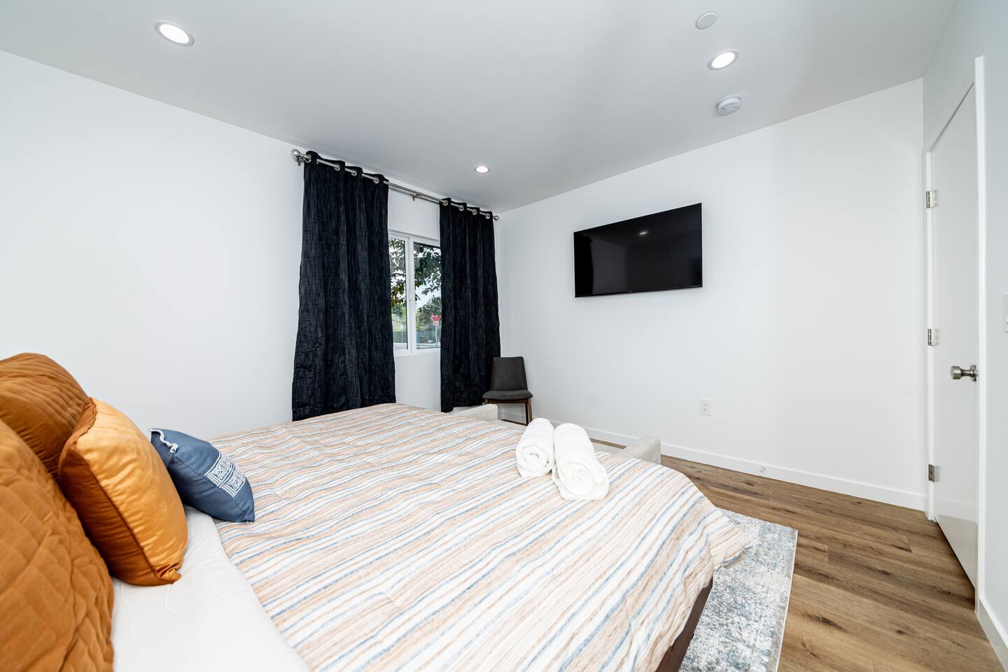 Welcome to your modern retreat in North Hollywood! This brand new home offers the perfect blend of comfort and convenience, making it an ideal choice for your LA. Enjoy cooking in a fully equipped kitchen featuring new stainless steel appliances. The open-concept living and dining areas provide ample space for relaxation and entertainment. Nestled in a tranquil area, you can unwind away from the city's hustle and bustle. Convenient street parking only is available for your vehicles.